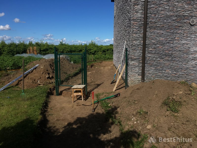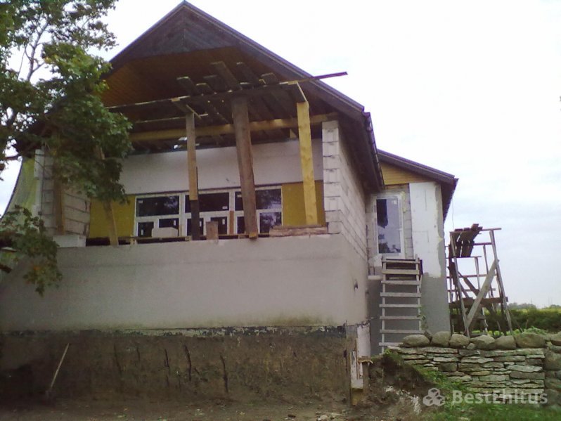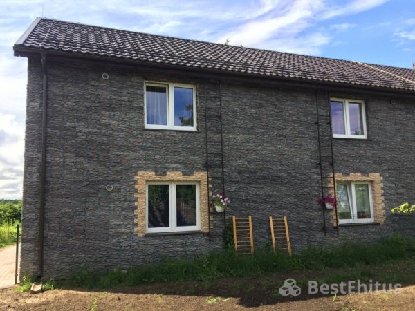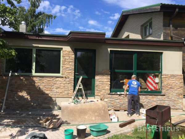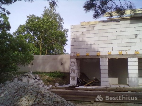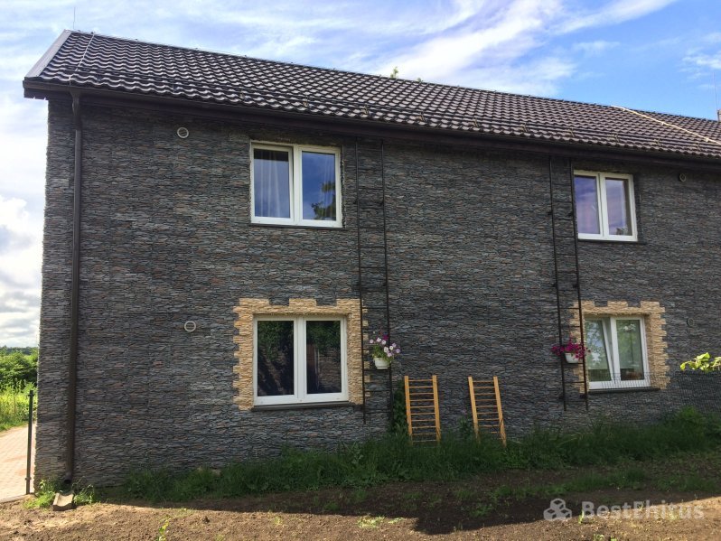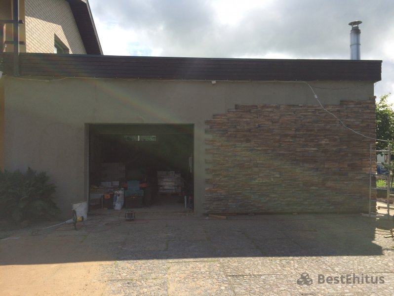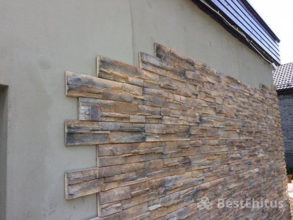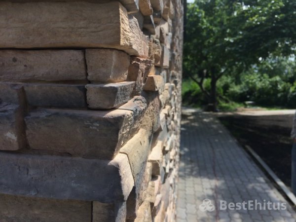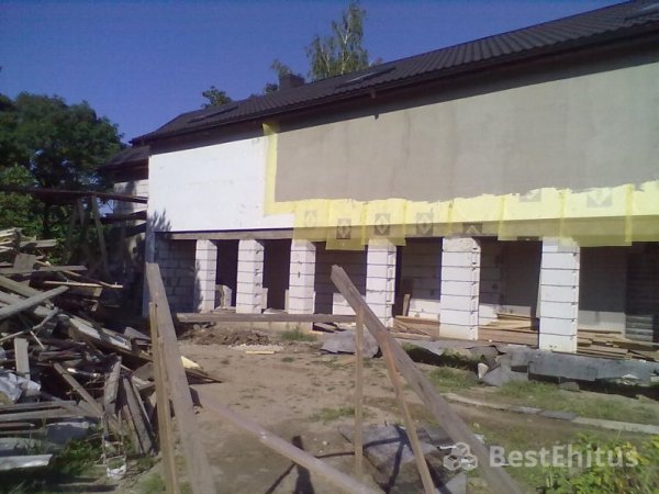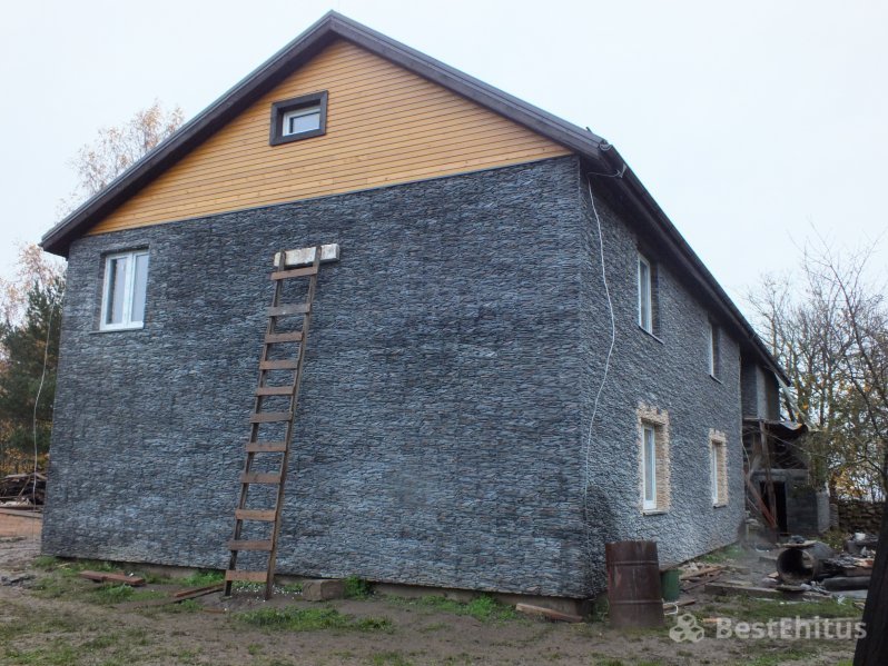 В ходе работы было выполнена кладка стен с утеплением, впоследствии стены обшивались натуральным камнем.
