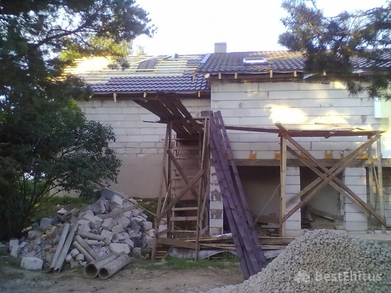 Кладка крыши из раннила под черепицу с утеплением и установкой сливов и мансардных окон.