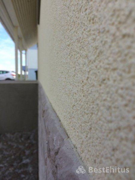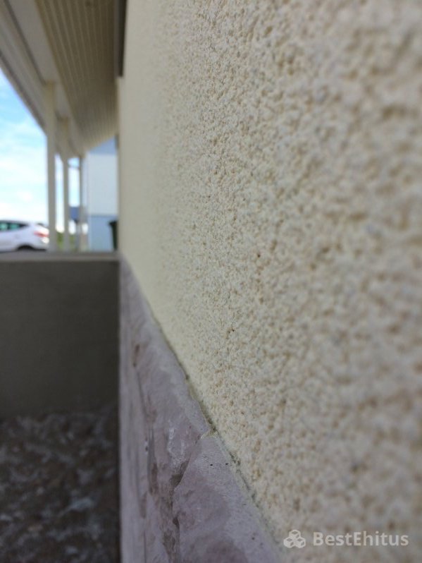 В ходе работы стены фасада были утеплены каменной ватой с последующим нанесением на её поверхность штукатурки.