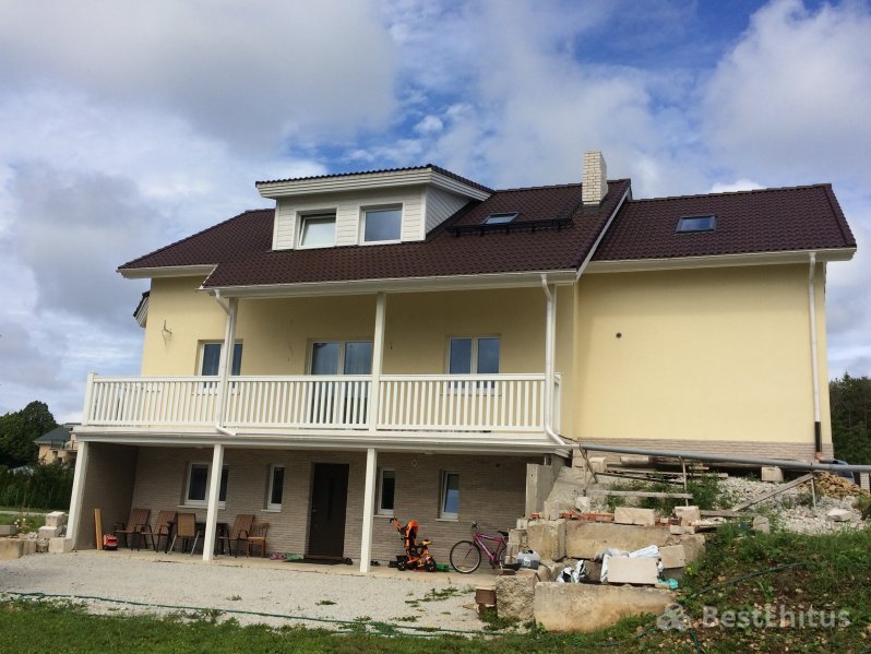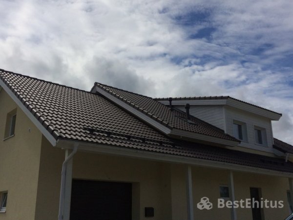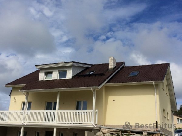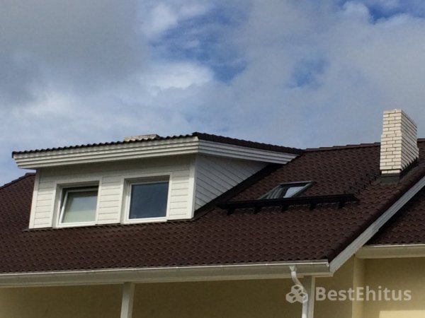 Постройка крыши делалась с нуля. Устанавливались стропила, обрешётка, утеплитель, звукоизоляция, ветрозащита, на поверхность крыши укладывалась черепица.