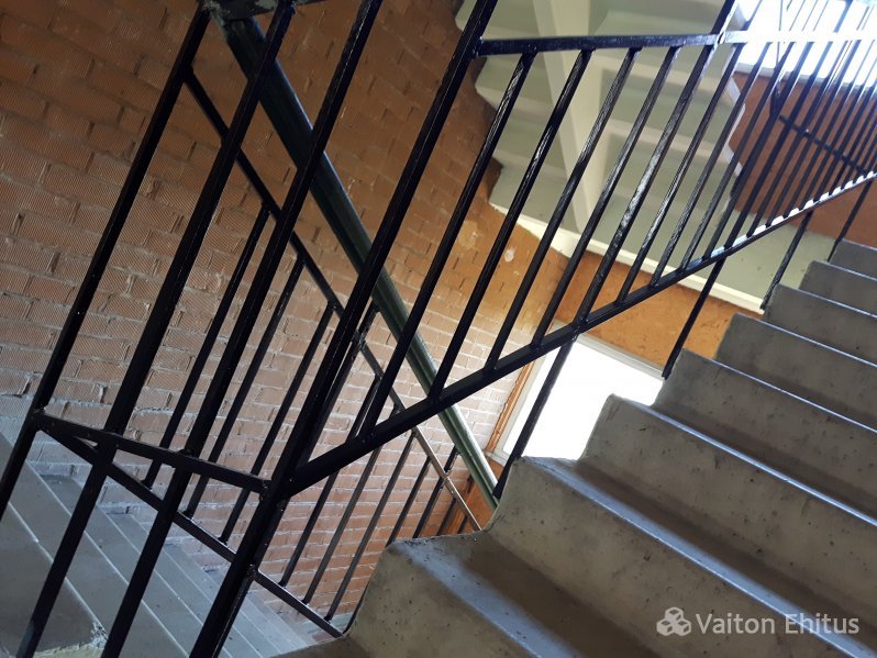 В ходе ремонта были заменены деревянные перегородки лестничных перил на железные с последующей их покраской.