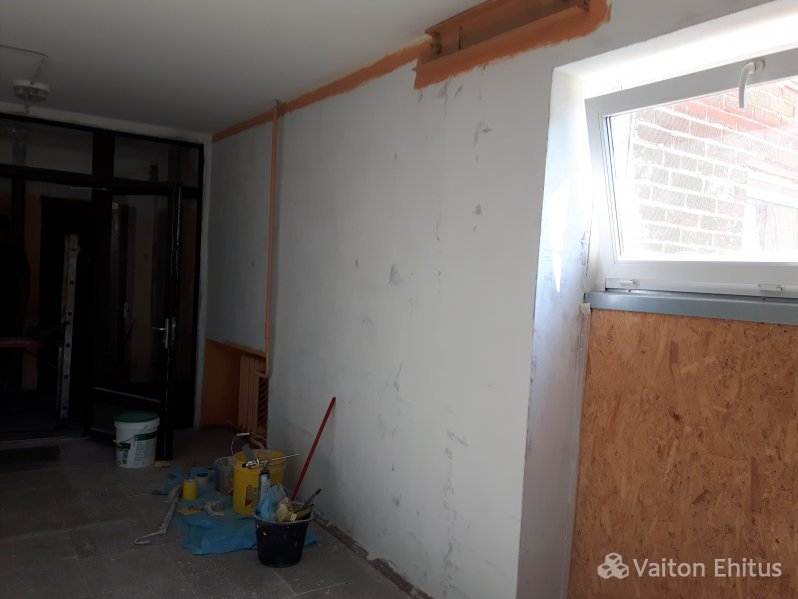Параллельно в подъезде была удалена старая краска на стенах, стены выровнены шпаклёвкой и покрашены.