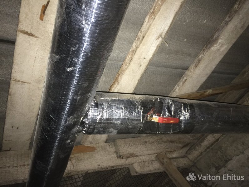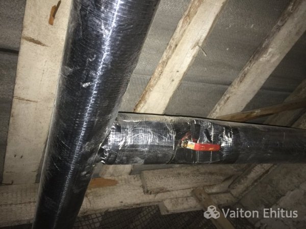 Замена/ремонт теплоизоляции отопительных труб на чердаке жилого дома.
