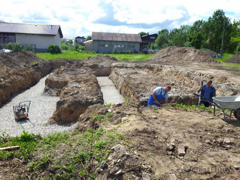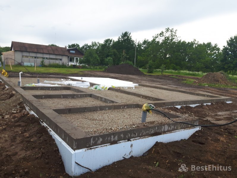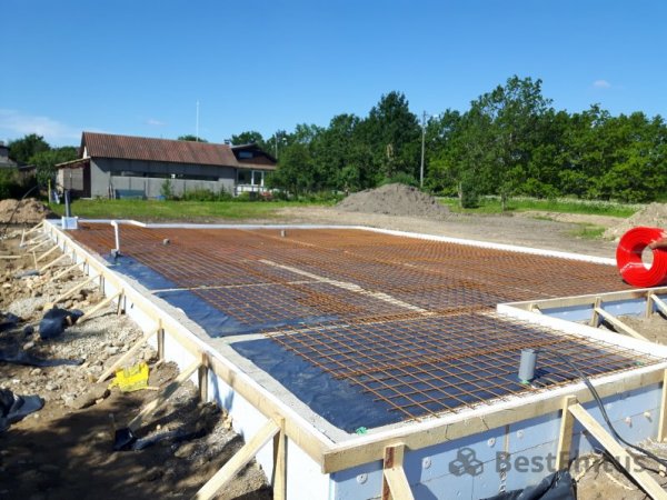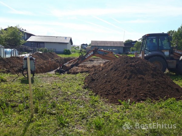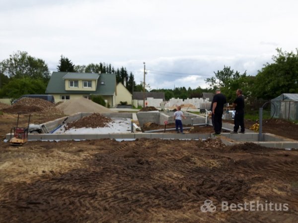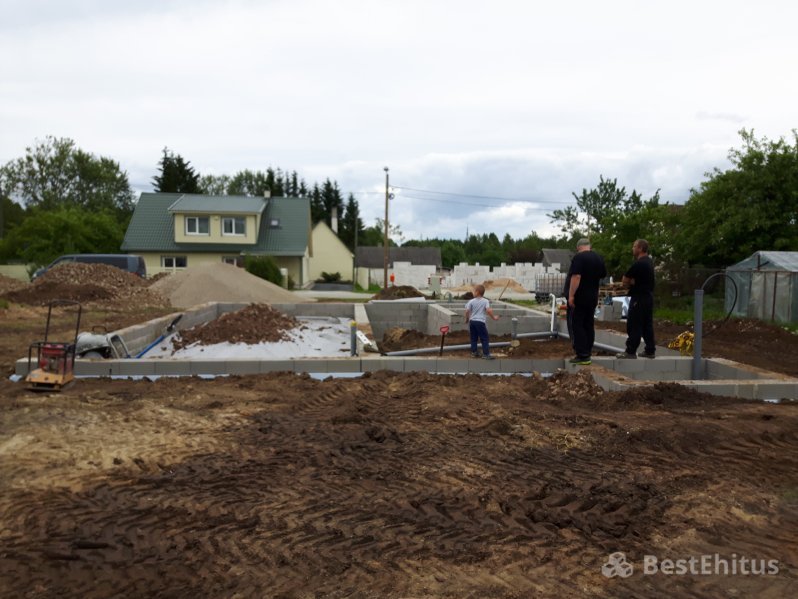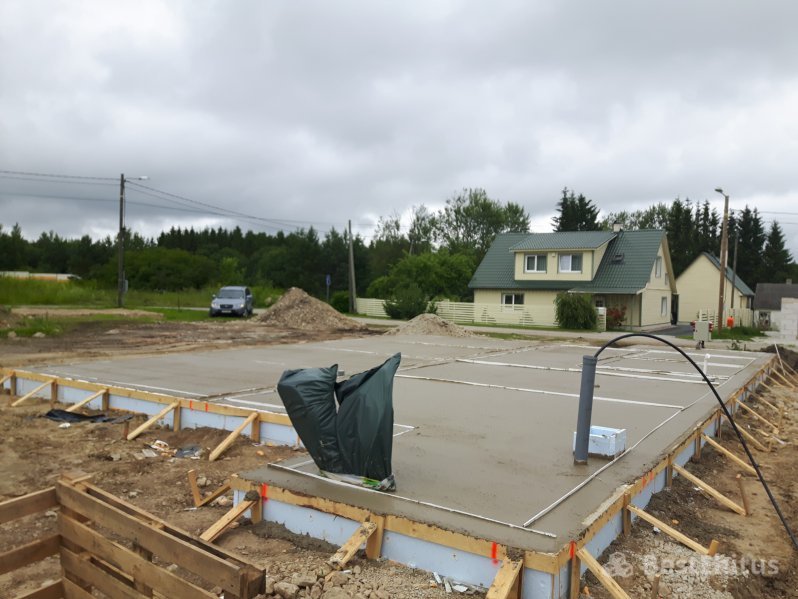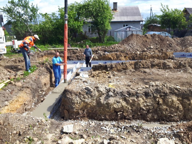 Проект в Йыхви включал в себя установку фундамента с утеплением и с укладкой тёплого пола с последующей его заливкой под нулевую отметку.