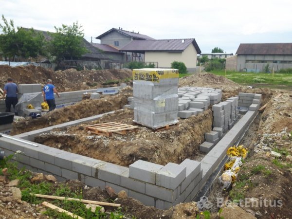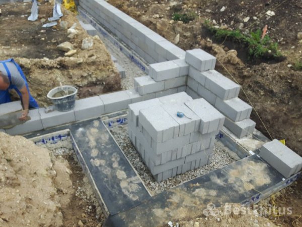 Фундамент: ленточная подушка + фундаментные блоки Fibo5