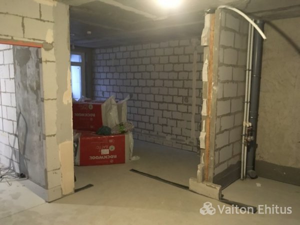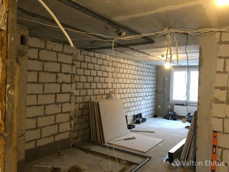 Нашей фирме предложили хороший проект по отделке квартиры в новостройке под ключ. По проекту необходимо было демонтировать несколько уже уложенных стеновых перегородок и выстроить новые перегородки в других местах согласно новому проекту квартиры, что мы и сделали.