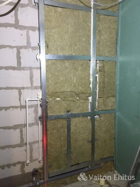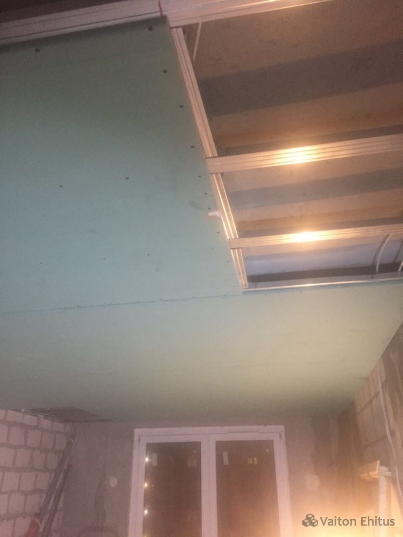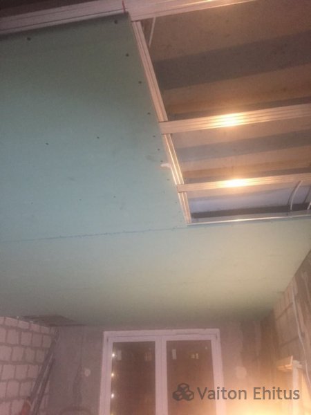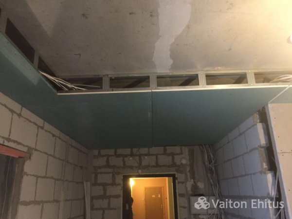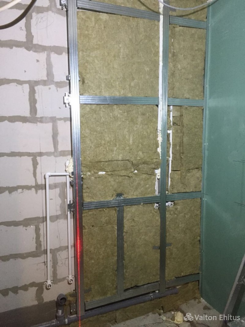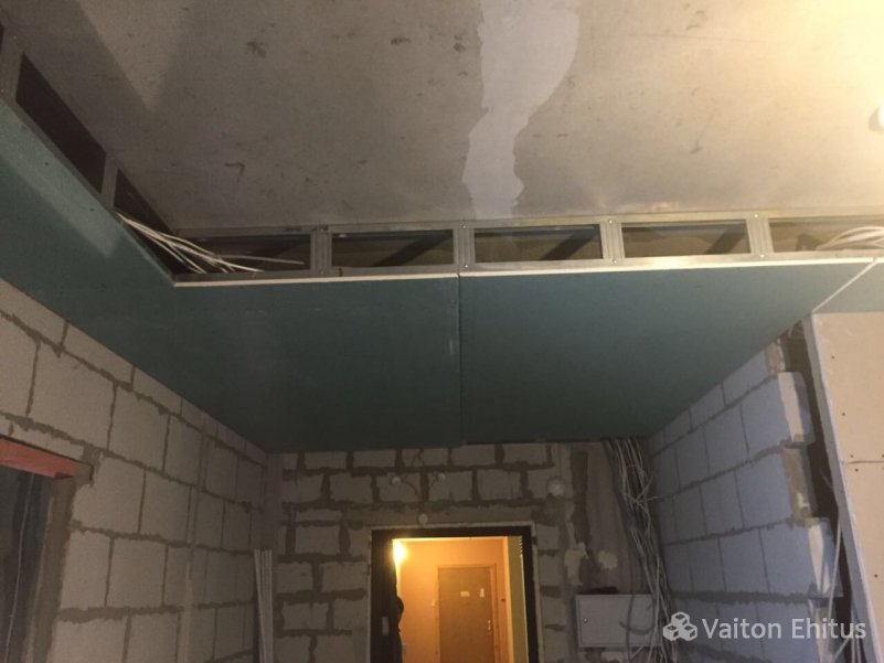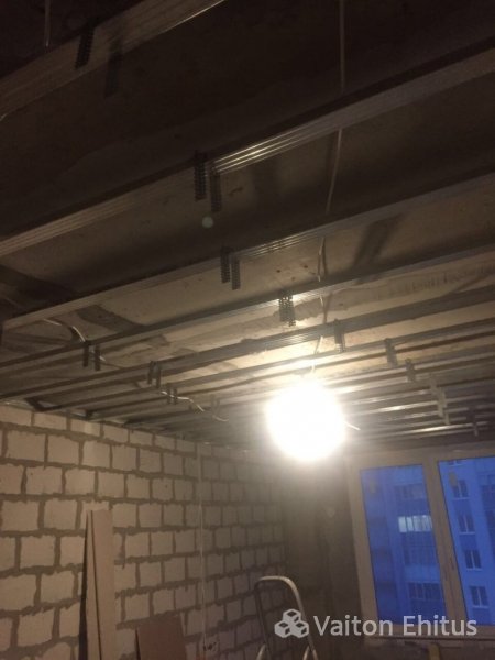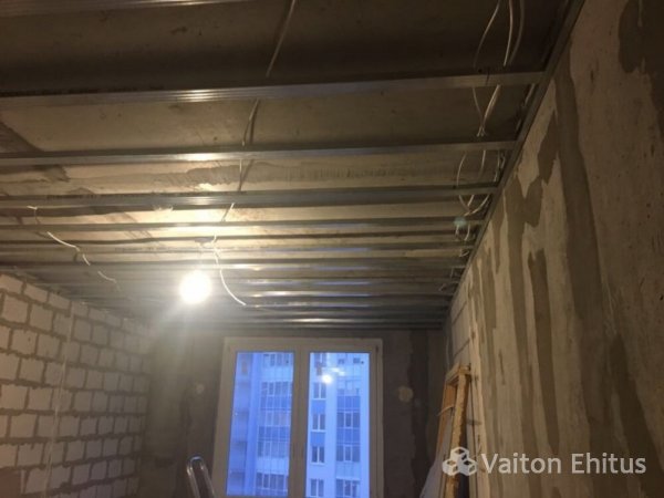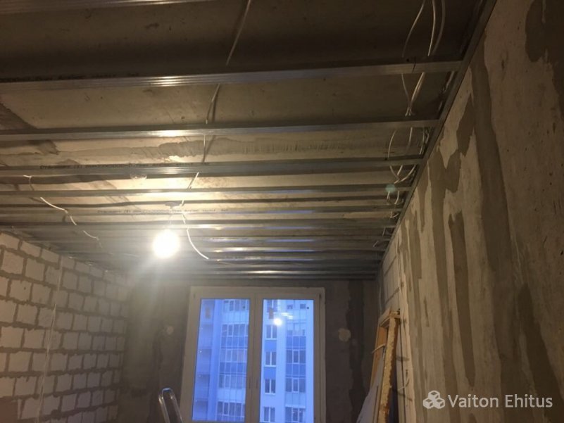 Установили каркасы для новых стен (владелец пожелал сделать нужные межкомнатные стены из гипсокартона) и потолочные каркасы;