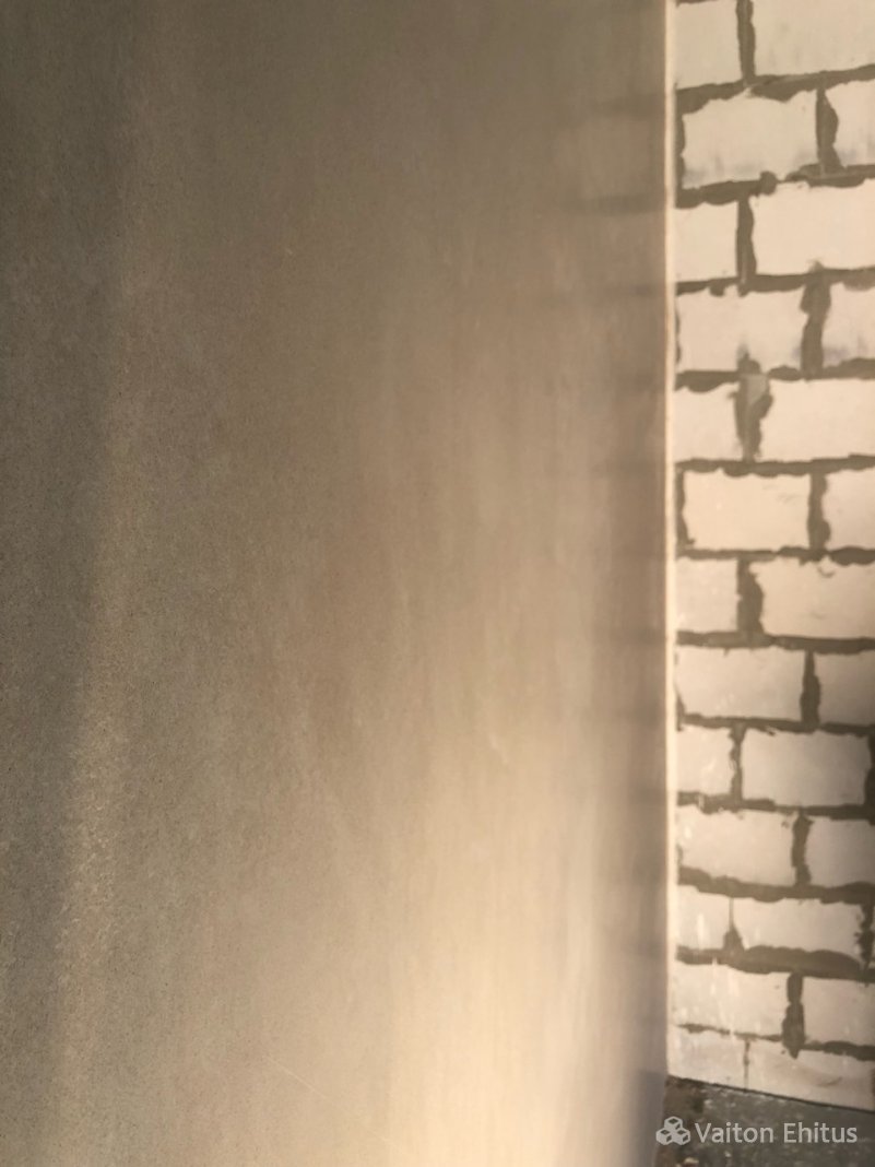 Фото финишного слоя ( готовый слой штукатурки настолько гладкий и глянцевый, что даже кирпич отражается в нём):