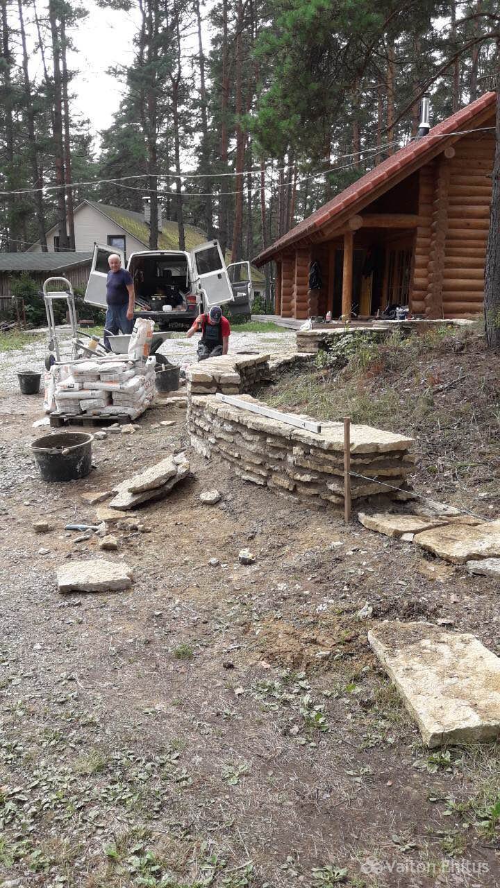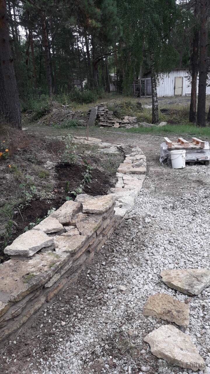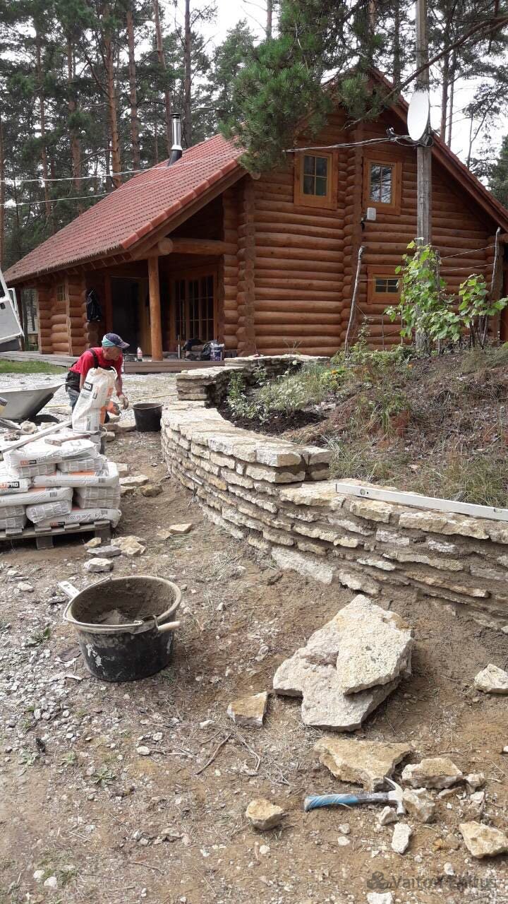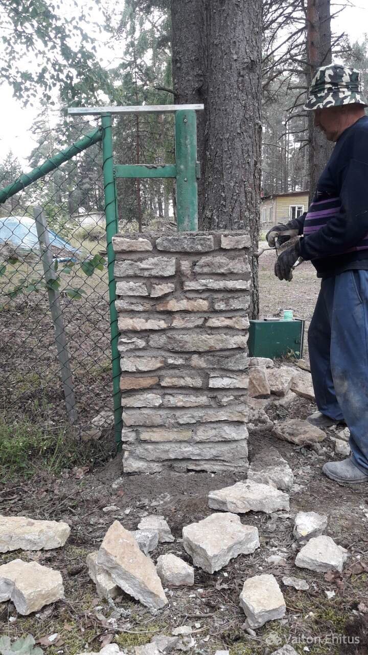 Строительство забора из природного камня в частном доме на Чудском озере.