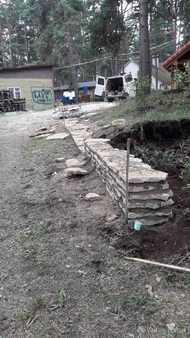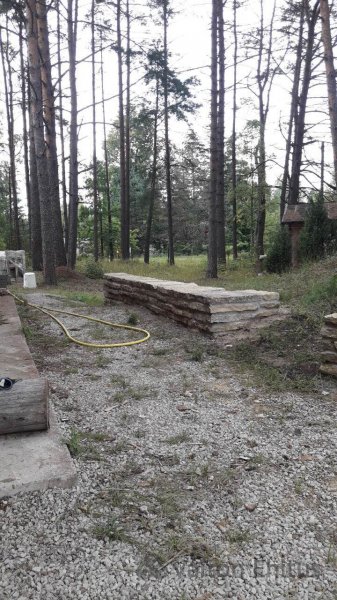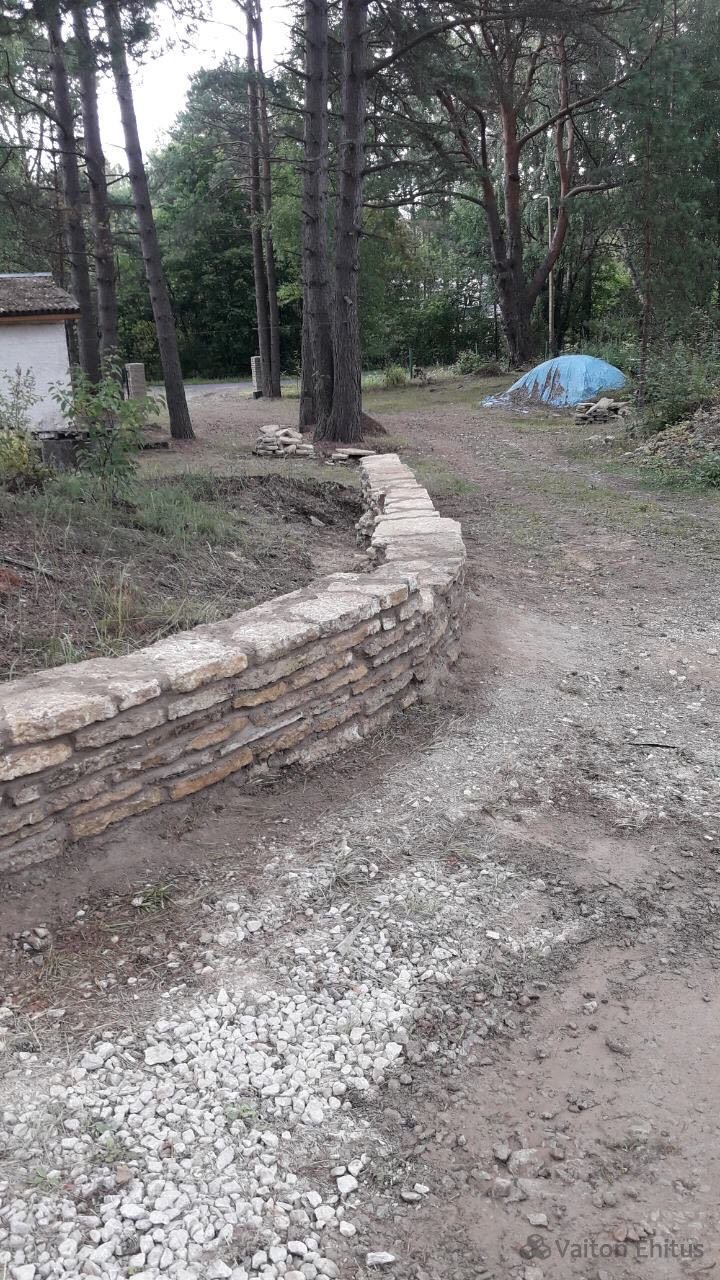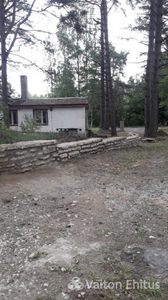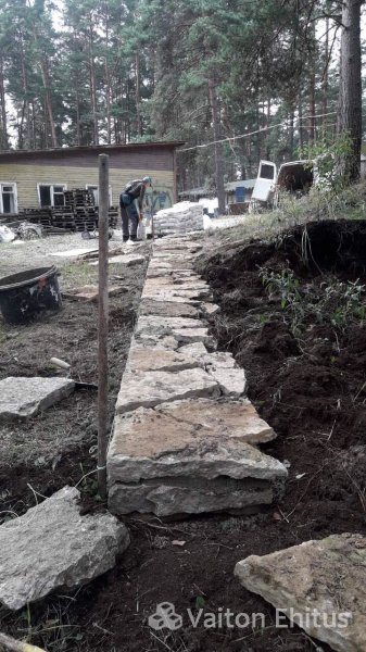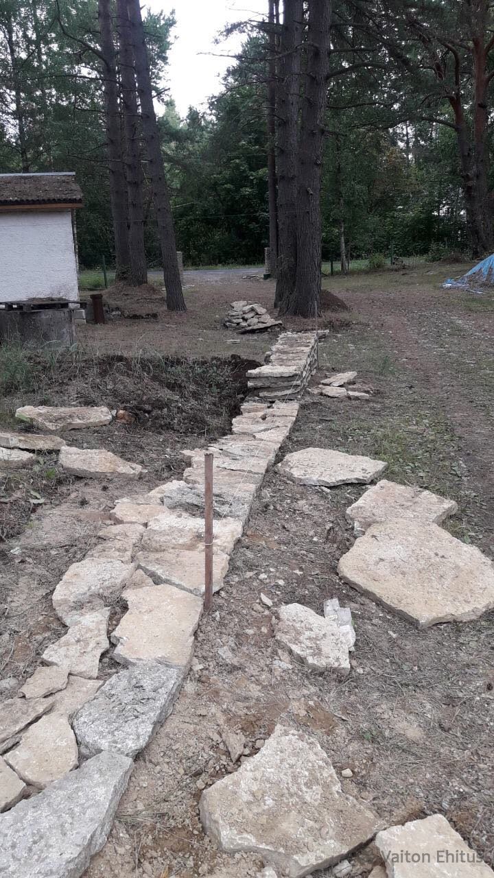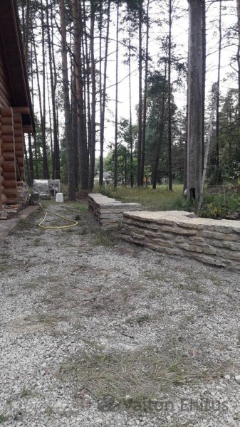Строительство забора из природного камня в частном доме на Чудском озере.