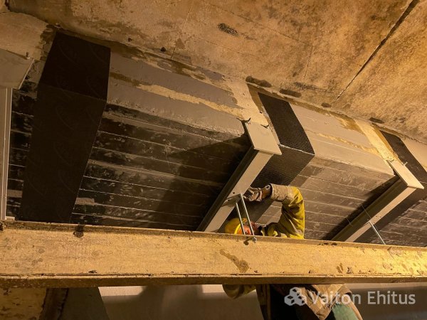 Нашей командой VaitonEhitus была произведена реконструкция несущей способности конструкций бункера склада сланца Балтийской электростанции в г. Нарва, где были применены углепластиковые ламели толщиной 5 мм. ТМ CarbonWrap производства Нанотехнологического центра композитов.